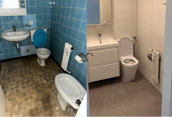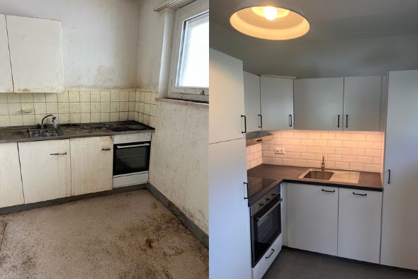 In the meantime, we sent out our first-ever invoice 🙌, for the renovation of five apartments. Not the most exciting project ever, but hey, we have to start somewhere. Here are a couple of photos of the worst apartment we renovated (before vs. after):